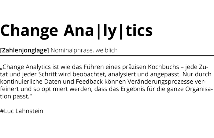 Change Analytics ist die systematische Erfassung, Analyse und Auswertung von Daten, um den Fortschritt und den Erfolg von Veränderungsprozessen zu…